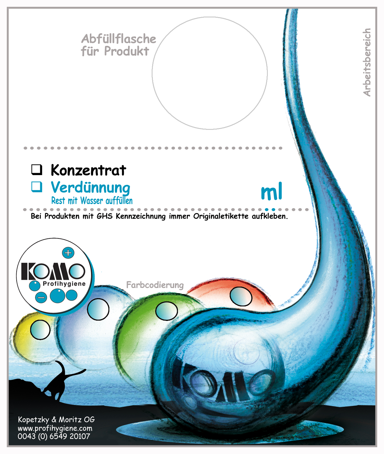 Die kleine, beschriftbare Flasche liegt handlich und leicht in der Hand. Glasflächen, Arbeitsflächen, Tische, Bänke, Sessel im Büro, Restaurant, Gastgarten, Schank, Rezeption usw. kann man so schnell, gezielt und ohne Rückstände reinigen und sauber halten.